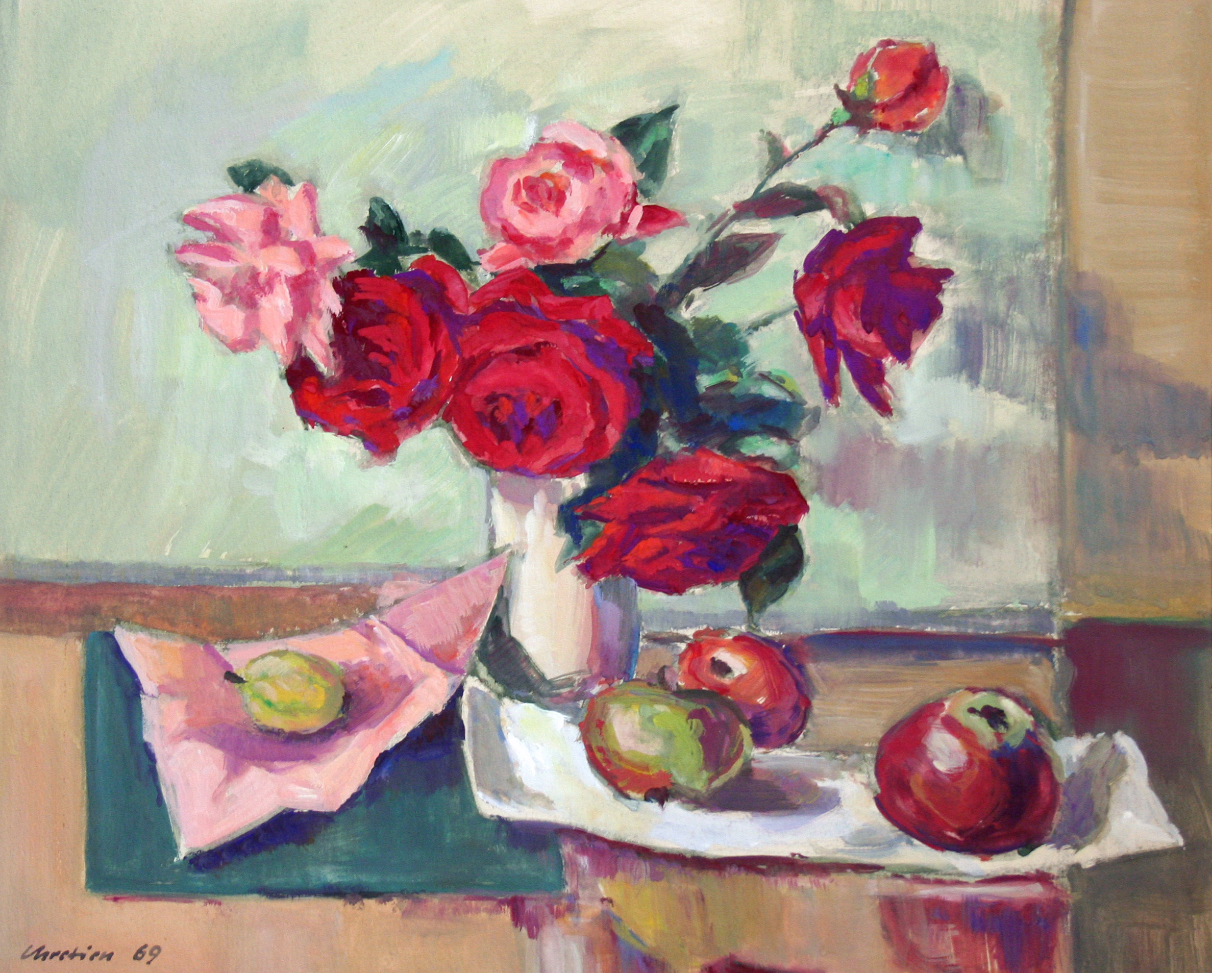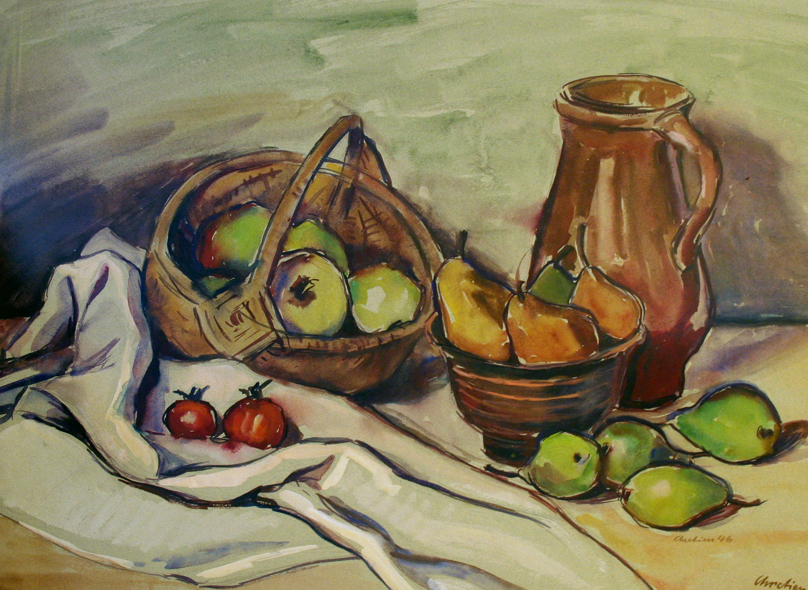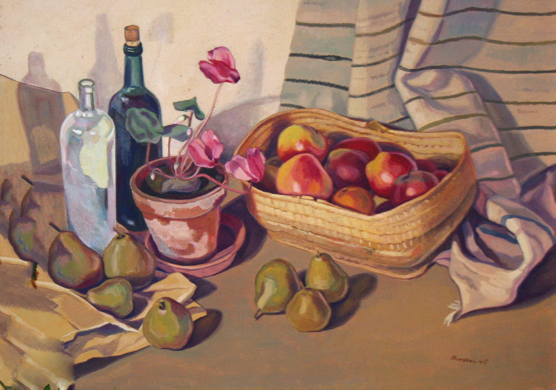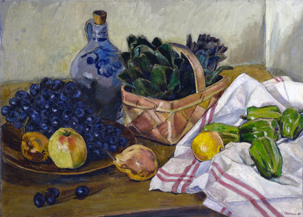 Dieses Esemble aus Obst und Wein, ist eines charakteristischsten Stillleben von John Chretien.