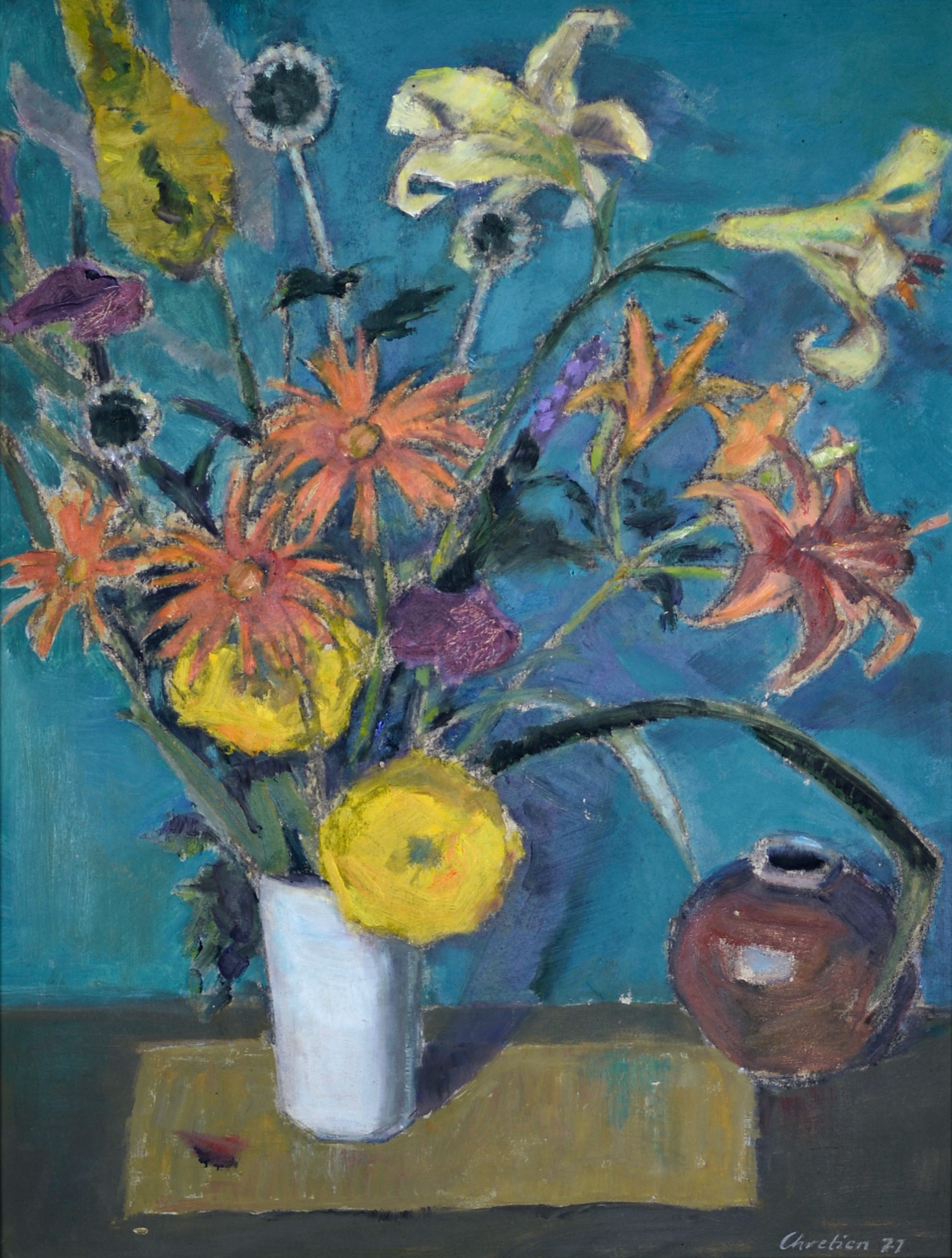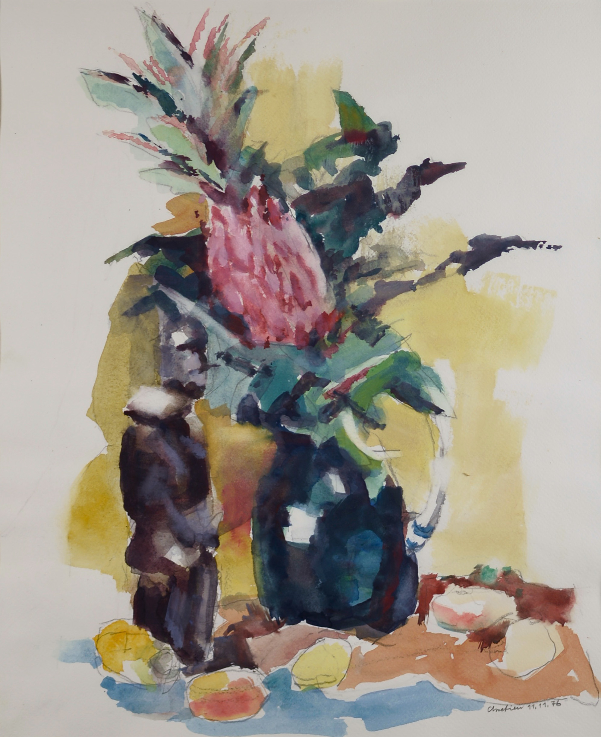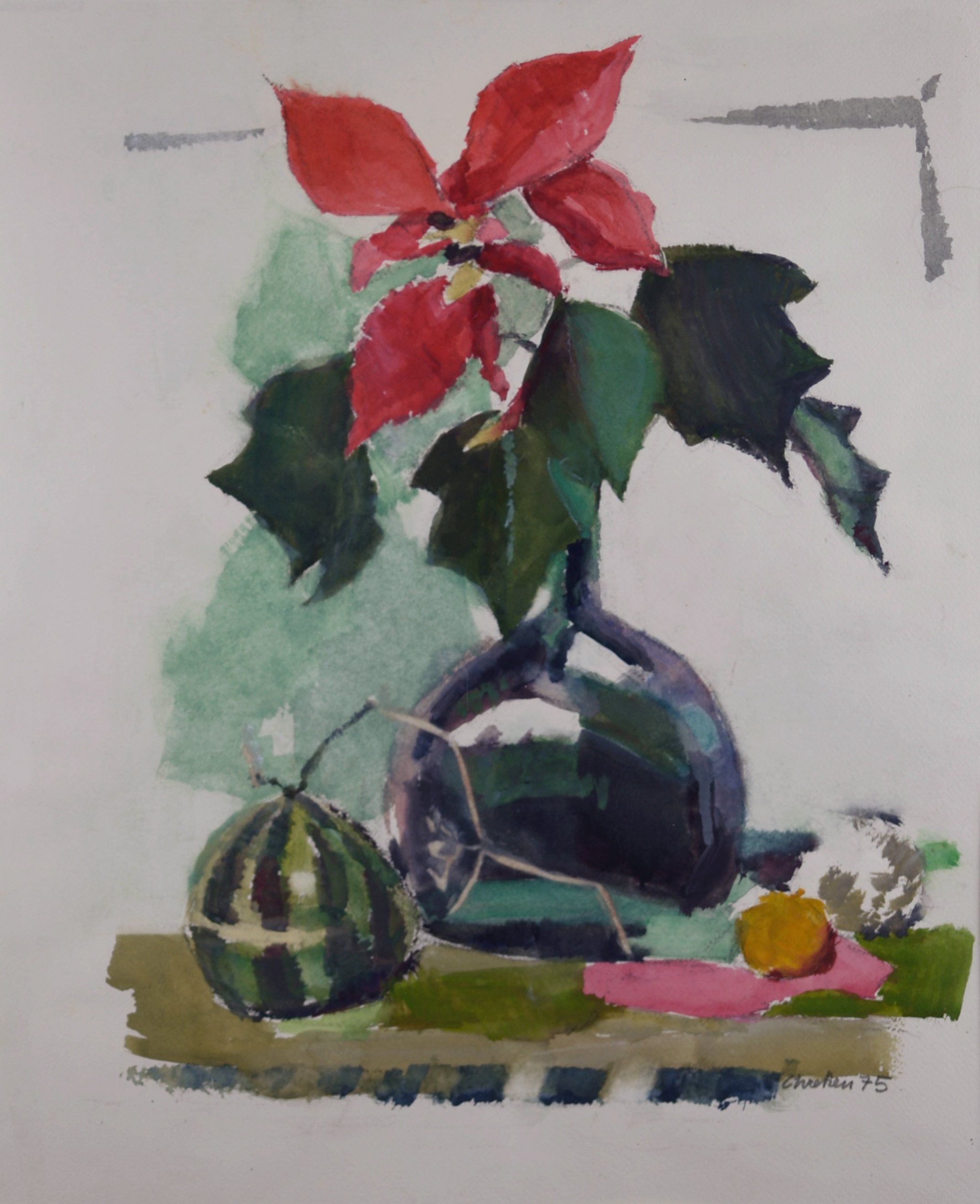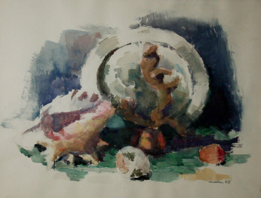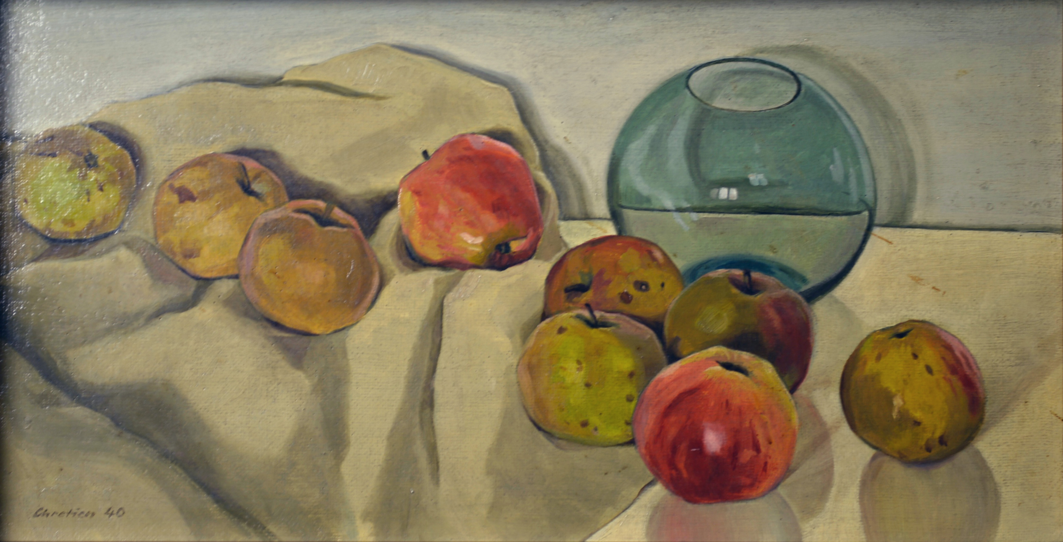 Dieses Esemble aus Obst und Wein, ist eines charakteristischsten Stillleben von John Chretien.