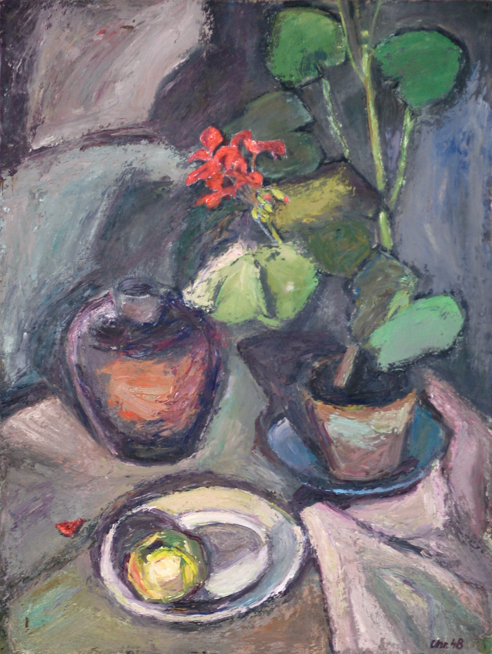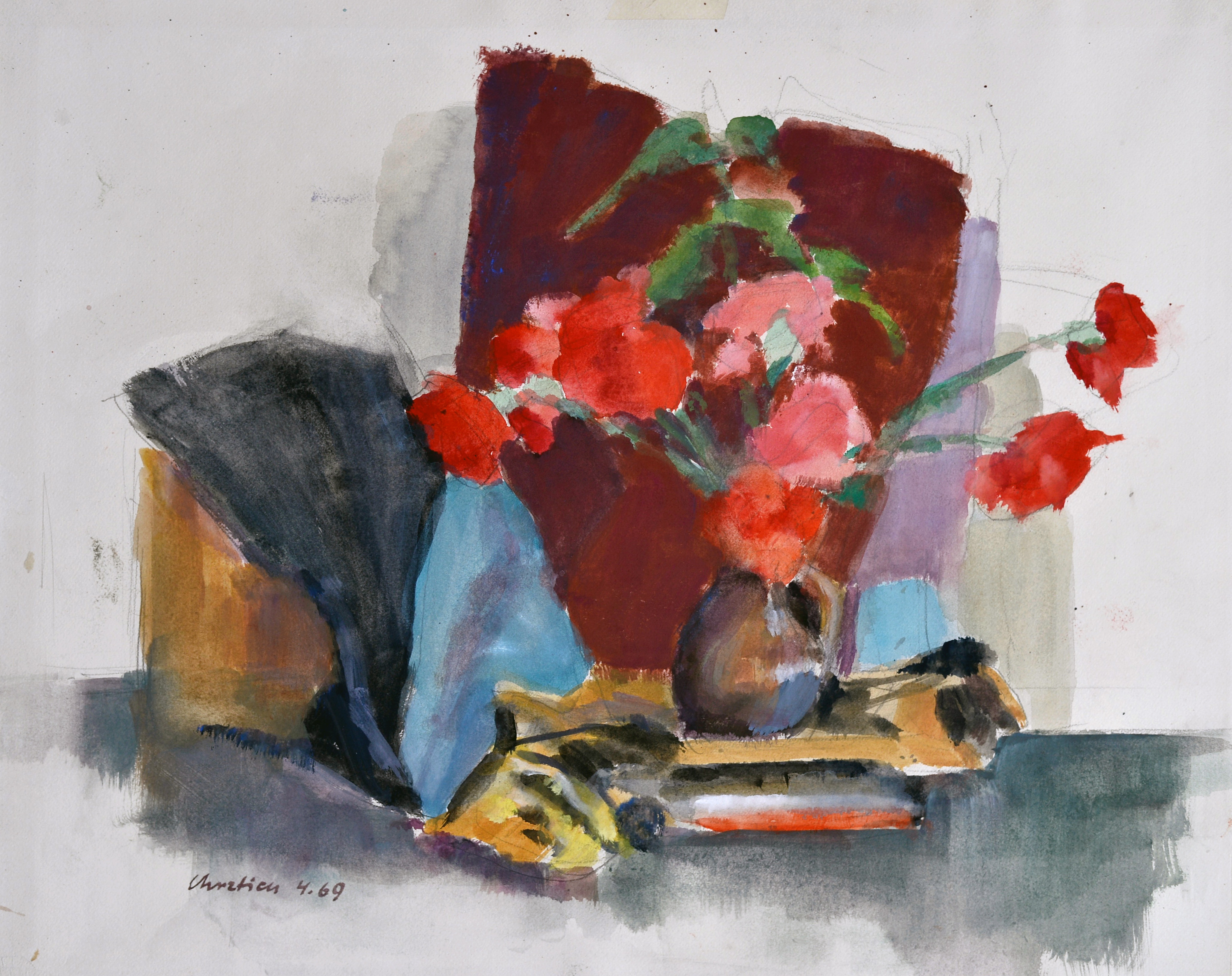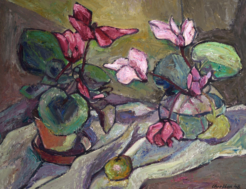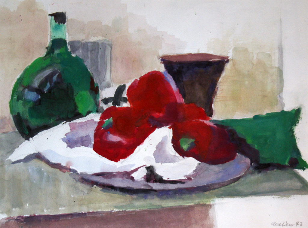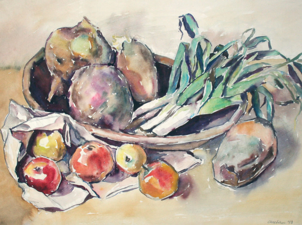 Dieses Esemble aus Obst und Wein, ist eines charakteristischsten Stillleben von John Chretien.